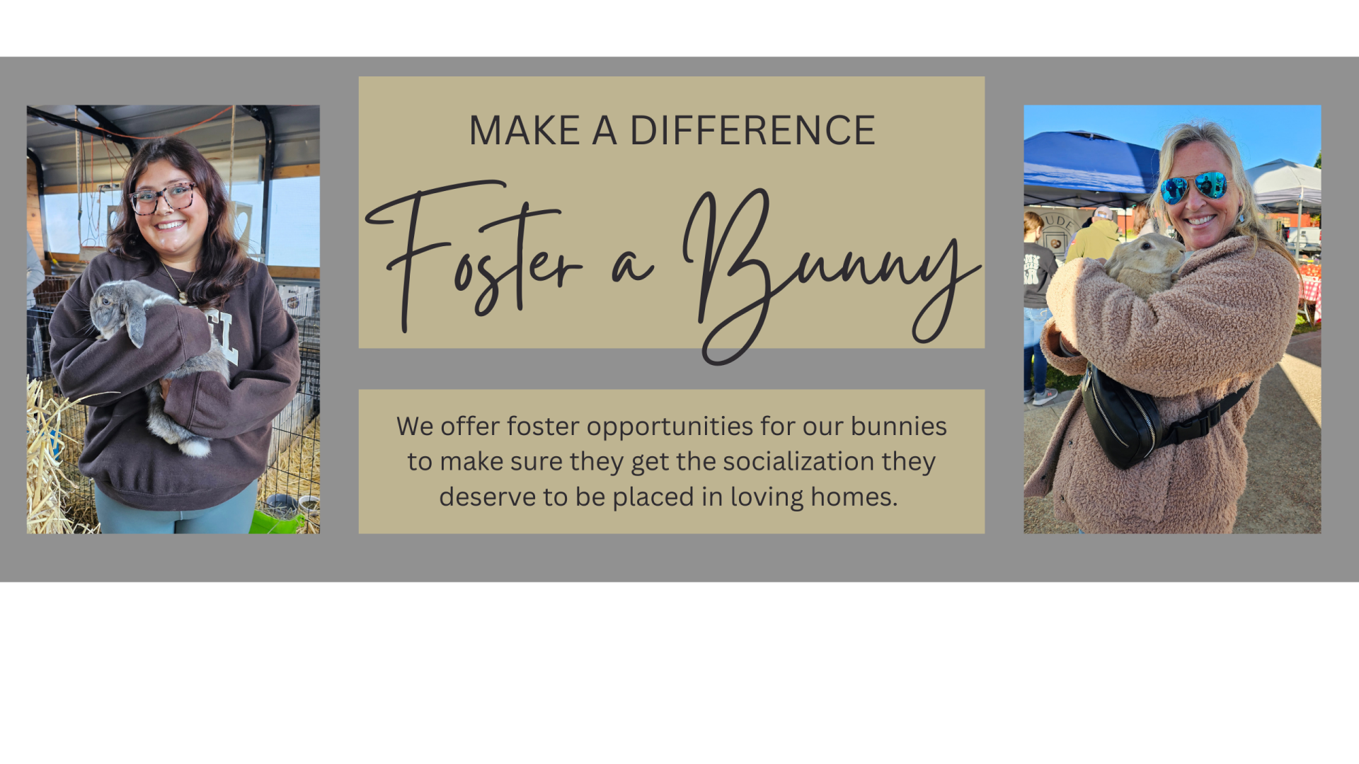 We offer animal adoption services, finding forever homes tailored to meet the animals' individual needs. We also provide sanctuary for those with special needs and disabilities. No bunny is ever turned away.